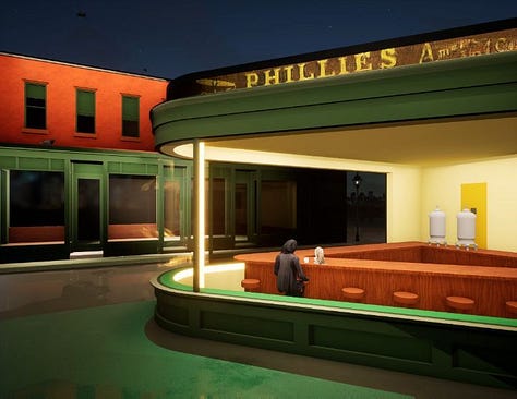 Occasionally you’ll even find Ichraq creating pieces that are odes to famous artists that most of us will be familiar with, like Yayoi Kusama (who recently launched a collaboration with Louis Vuitton), famed Japanese animation studio, Studio Ghibli, and Edward Hopper’s iconic Nighthawks piece.